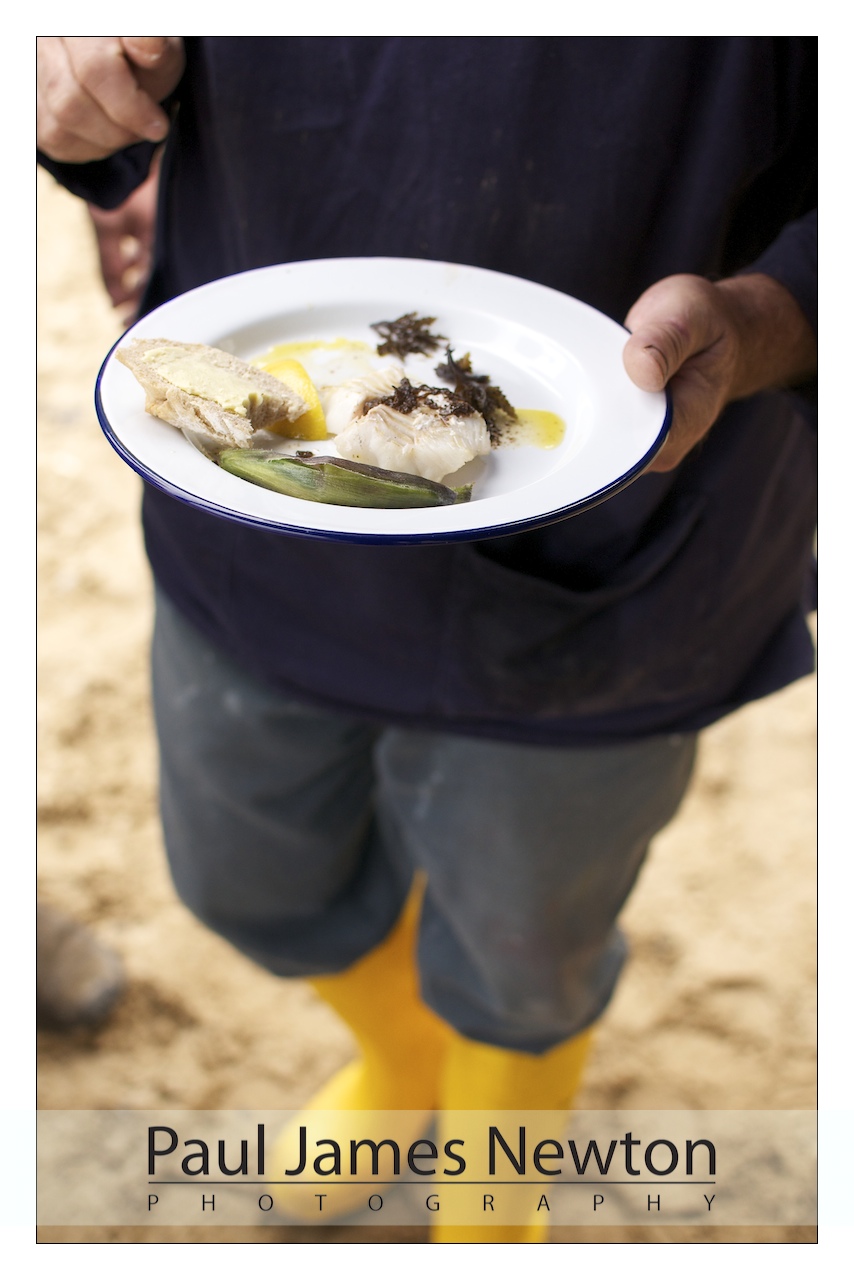 Fish caught, we returned to shore for Chris to cook up another selection of great dishes with a seaweed salsa. The weather again turned in our favour, and we wrapped on the job enjoying beer and freshly made food on the beach.